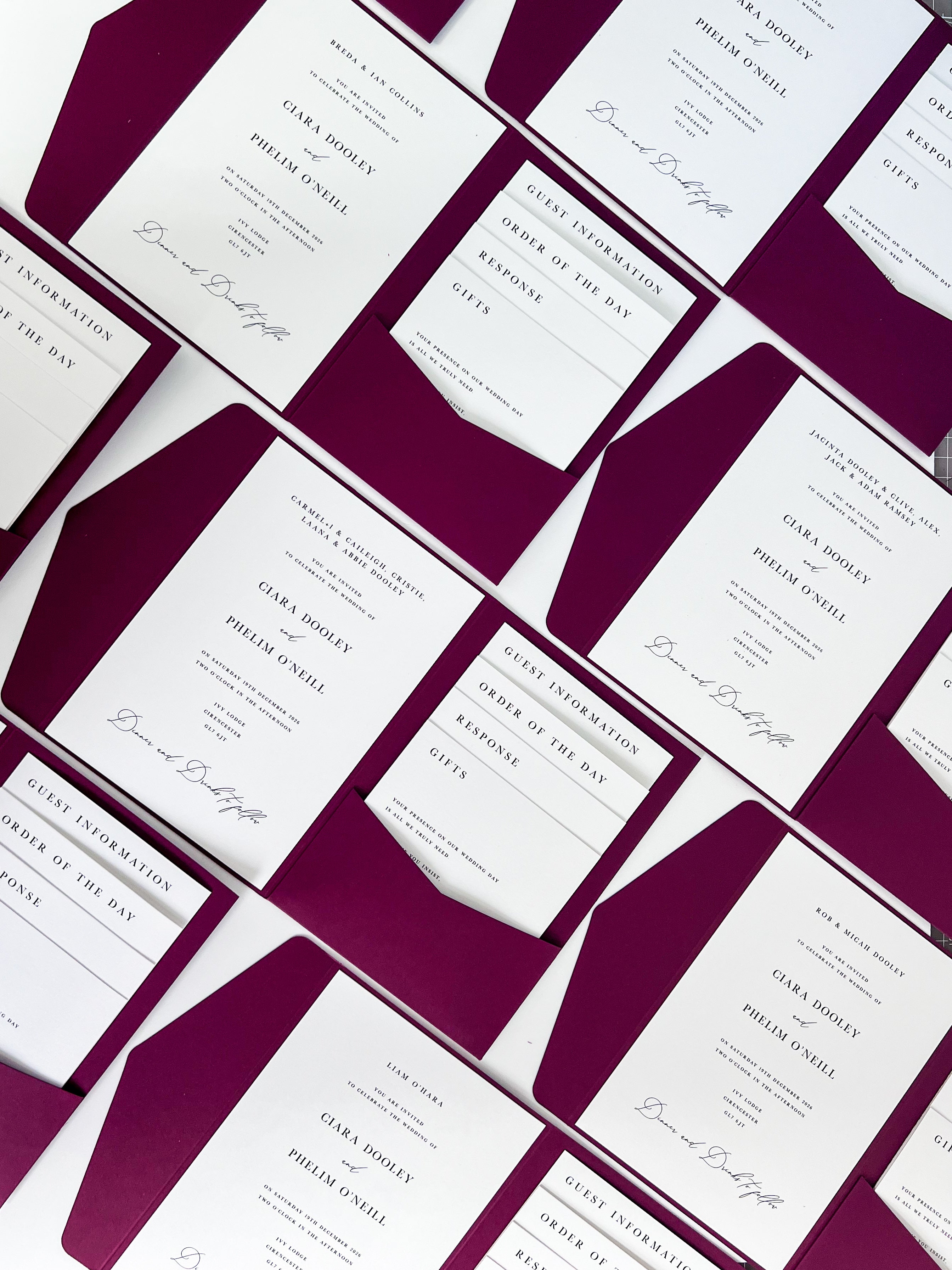 Regardless of how intimate or party-focused your wedding is, not ordering enough invitations can create avoidable stress and unnecessary expense. Always speak to your stationer about their process and recommendations — but as a general rule, allowing an extra 10–15% is strongly advised.