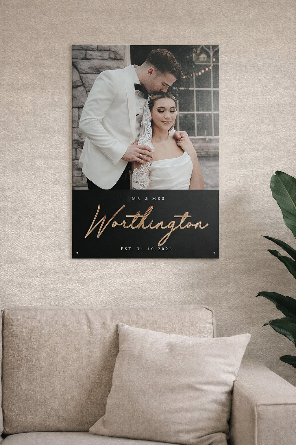 2/3 UV printed Photo on Black or White Acrylic. 3D Text for Married Surname.