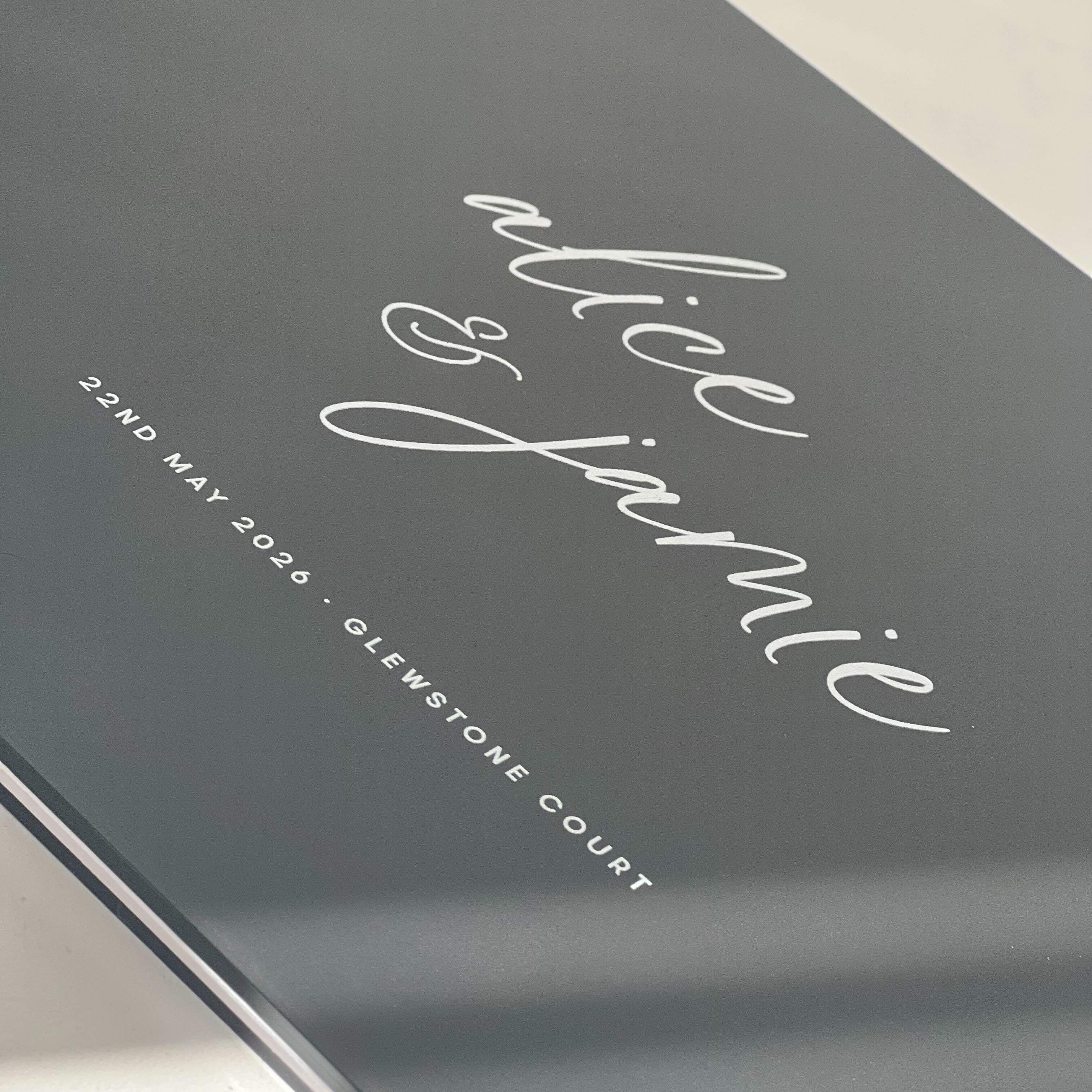 Made from Luxury Matt 3mm acrylic, and design, cut, printed and hand crafted in the UK, our gorgeous Acrylic guests books will WOW your guests.