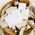 How much information you include with your invitations will depend on your event, as this differs from couple to couple. It’s for this reason that our invitations are versatile, enabling you only to order the pieces that you need. But we do recommend that less is more in most cases.