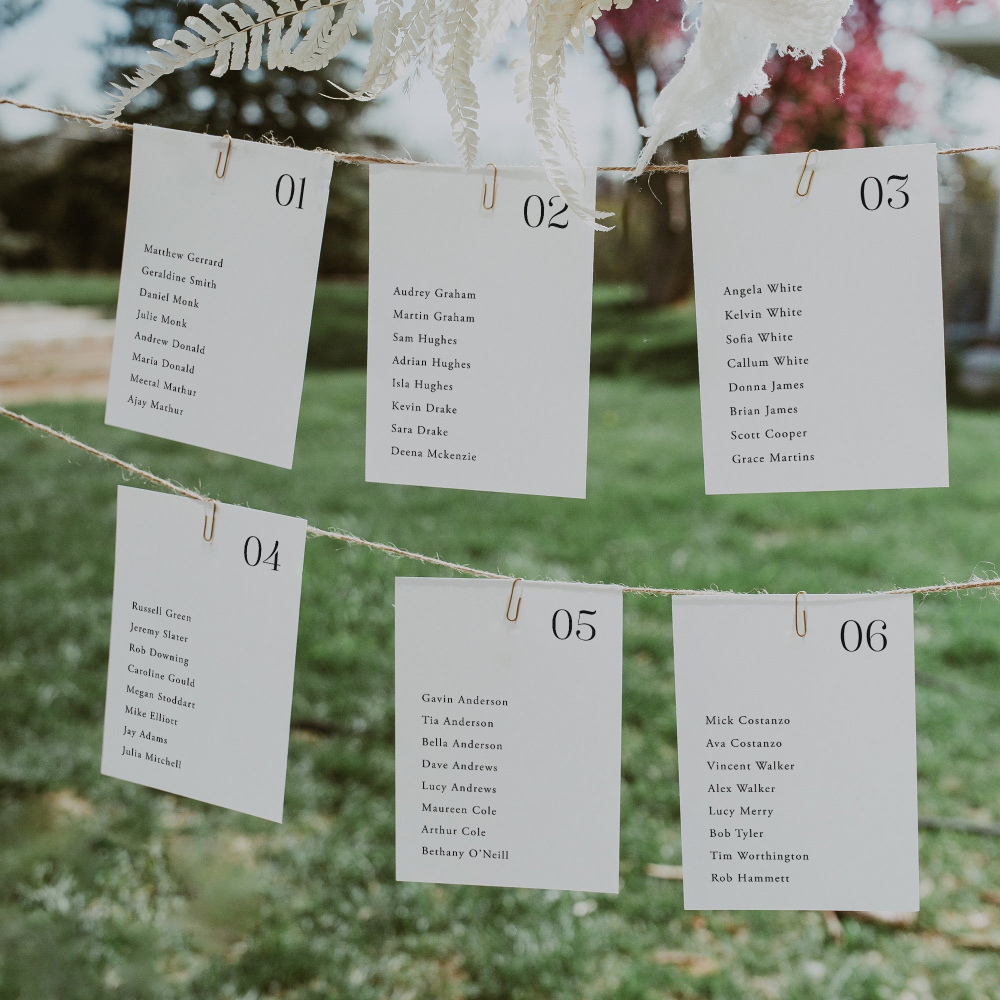 Table plan cards are offered in A6 (105mm x 145mm), 5" x 7" (127mm x 177mm) or A5 (148mm x 210mm).