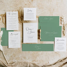 Wording, formatting and layout can all be adjusted to suit for all pieces. Whilst we've chosen certain information for each piece for sample purposes, you can use any of the pieces for any information. If you use the RSVP card without a return envelope, then this will just become another information card.