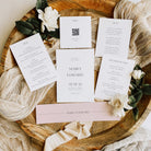 How much information you include with your invitations will depend on your event, as this differs from couple to couple. It’s for this reason that our invitations are versatile, enabling you only to order the pieces that you need. But we do recommend that less is more in most cases.