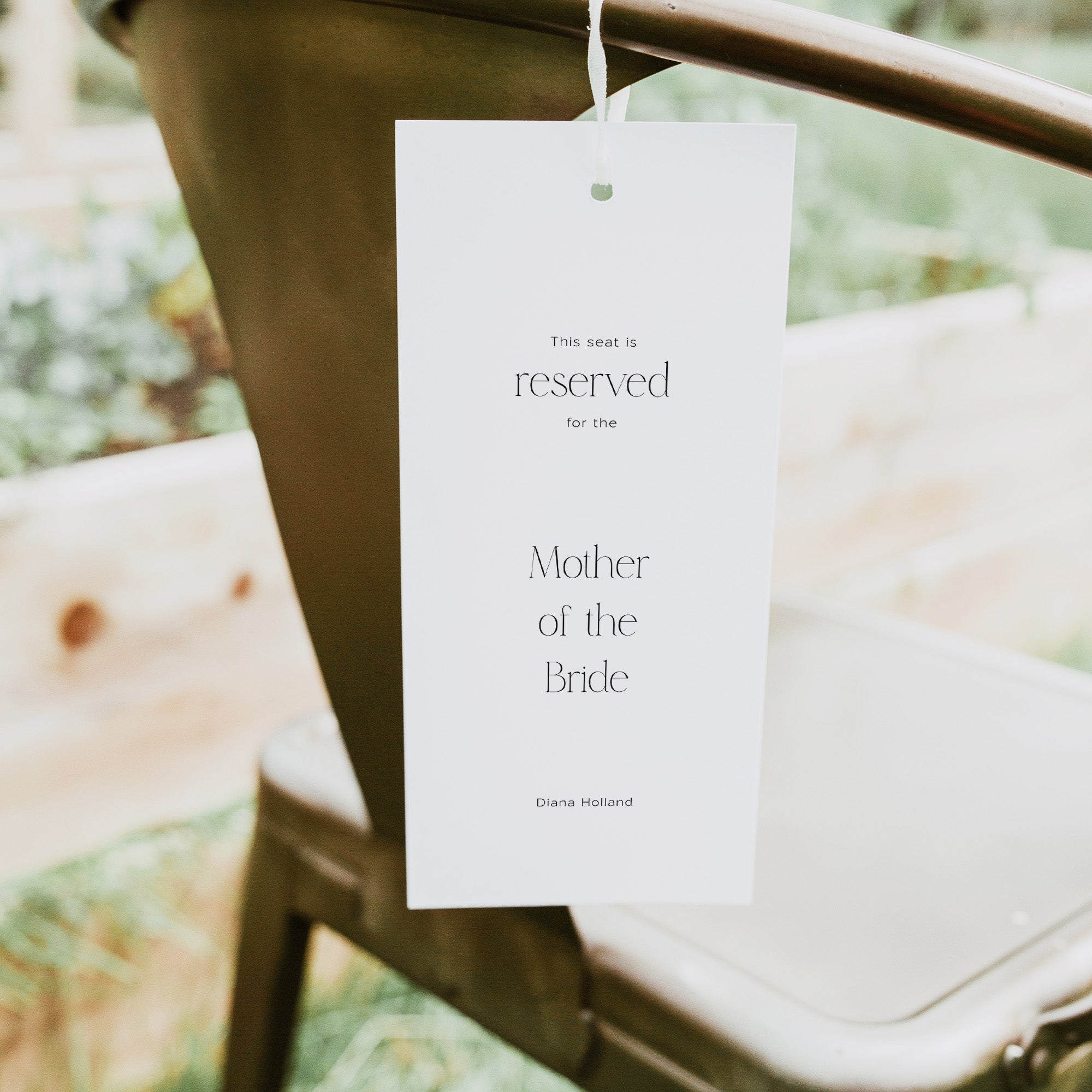 With the option of a folded card or hanging tag, these beautiful seat reservation cards are from our simple and classical Victoria collection.