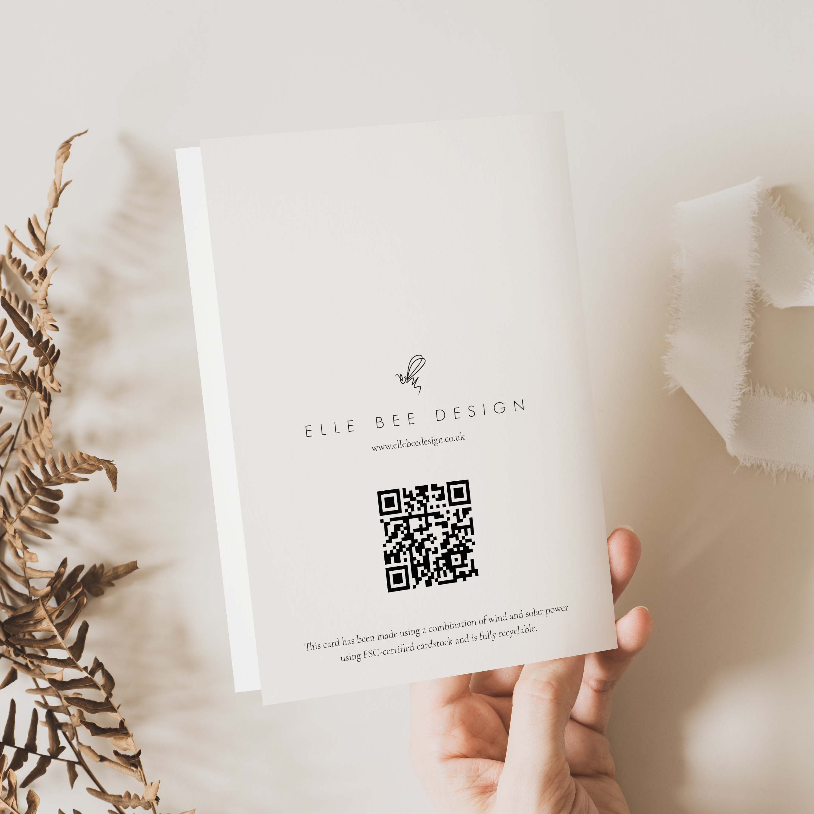 Our goal was to find the most sustainable cardstock for printing our cards and we stumbled upon a lovely stock that's manufactured using a mix of solar and wind power which is truly unique, alongside being FSC-certified for responsible forest management.
