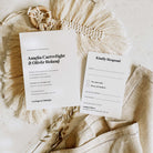 Wording, formatting and layout can all be adjusted to suit. Whilst we've chosen certain information for sample purposes, you can include any information. If you use the RSVP card without a return envelope, then this will just become an information card.