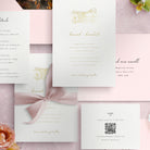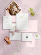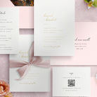 And this extends to the pieces you want your suite to include, you can opt for a single invitation card only if required or include up to three inserts with the option of guests responding to you digitally, or traditionally with a return envelope.
