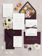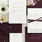 Hot foiling invitations is very flexible and can be used in a number of ways. You can opt to have full foiling for all pieces, foil only specific elements such as your names or monogram for impact, add blind debossing or embossing, and so on.