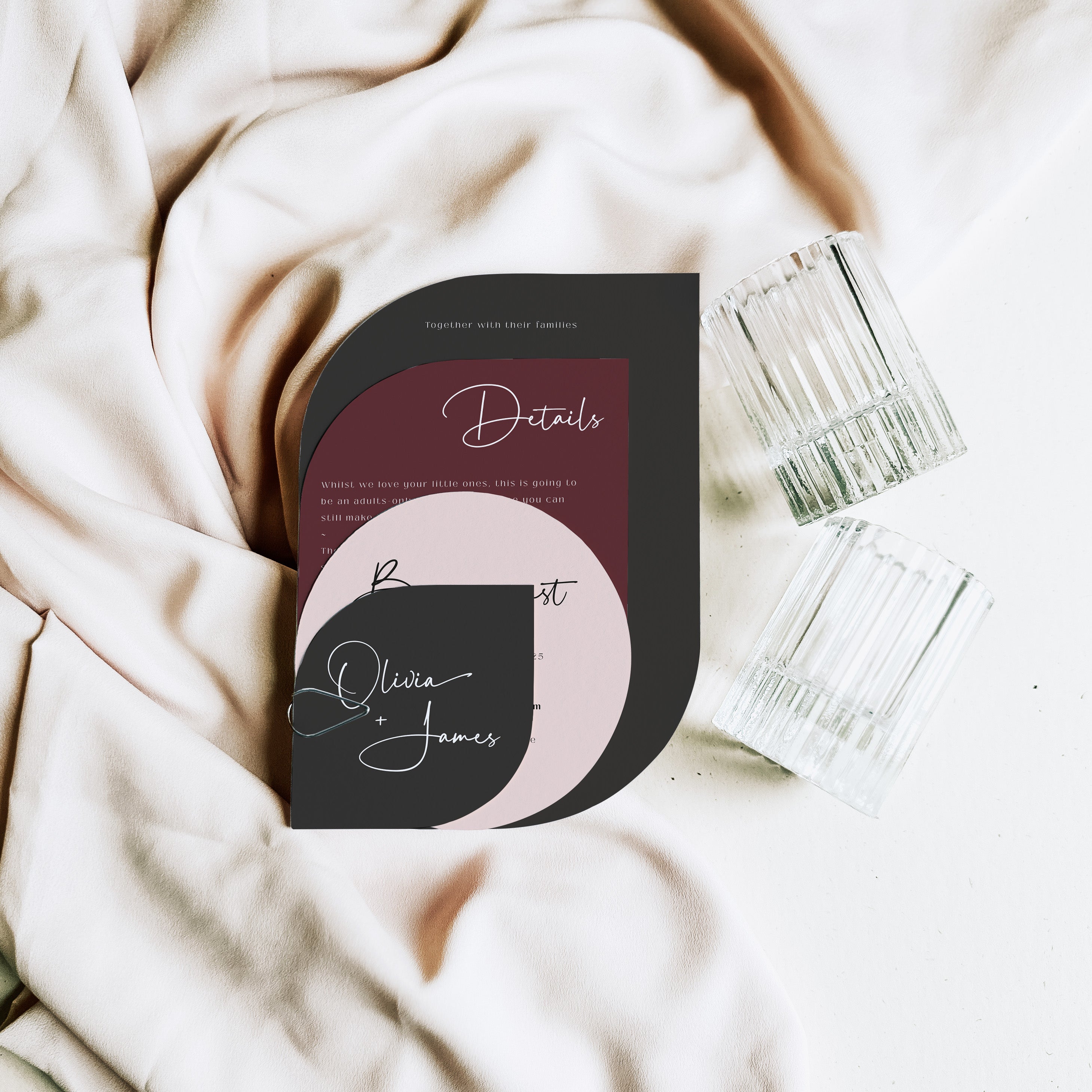 How much information you include with your invitations will depend on your event, as this differs from couple to couple. It’s for this reason that our invitations are versatile, enabling you only to order the pieces that you need. But we do recommend that less is more in most cases.