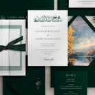 Letterpress invitations work beautifully with custom venue illustrations.