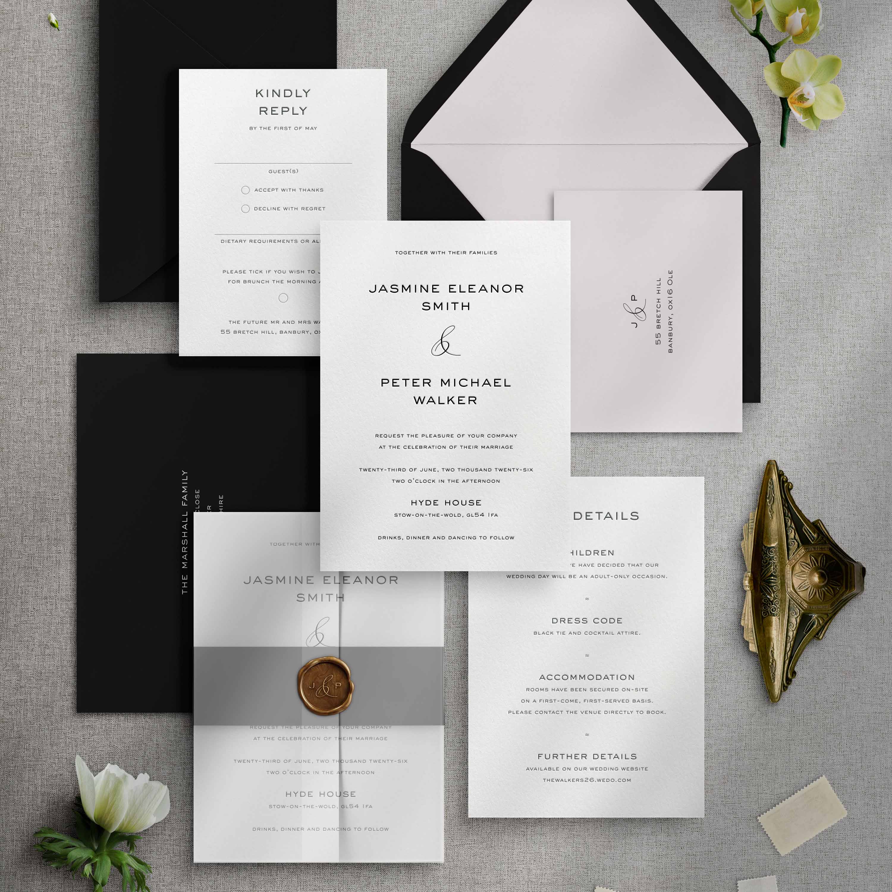 Additional advice would be to keep information concise where you can and, if possible, use a wedding website for a lot of your long-form, conversational wording. This can ensure you can put more of your budget into the styling of your invitations.