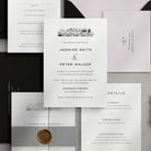 Letterpress invitations work beautifully with custom venue illustrations.