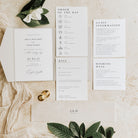 Wording, formatting and layout can all be adjusted to suit for all pieces. Whilst we've chosen certain information for each piece for sample purposes, you can use any of the pieces for any information. If you use the RSVP card without a return envelope, then this will just become another information card.