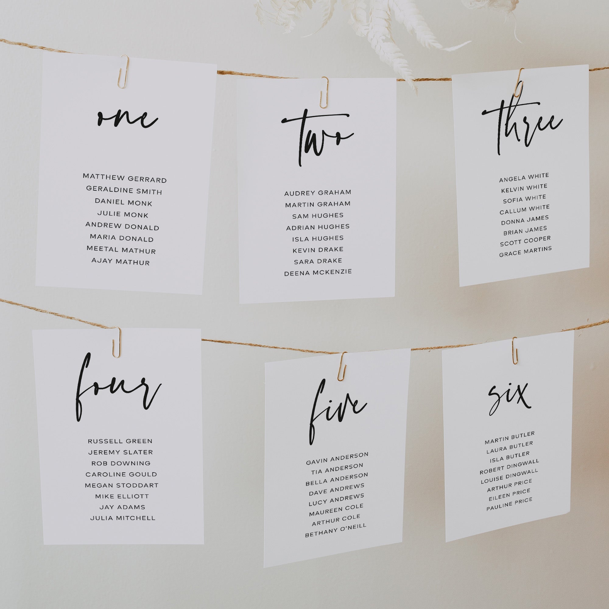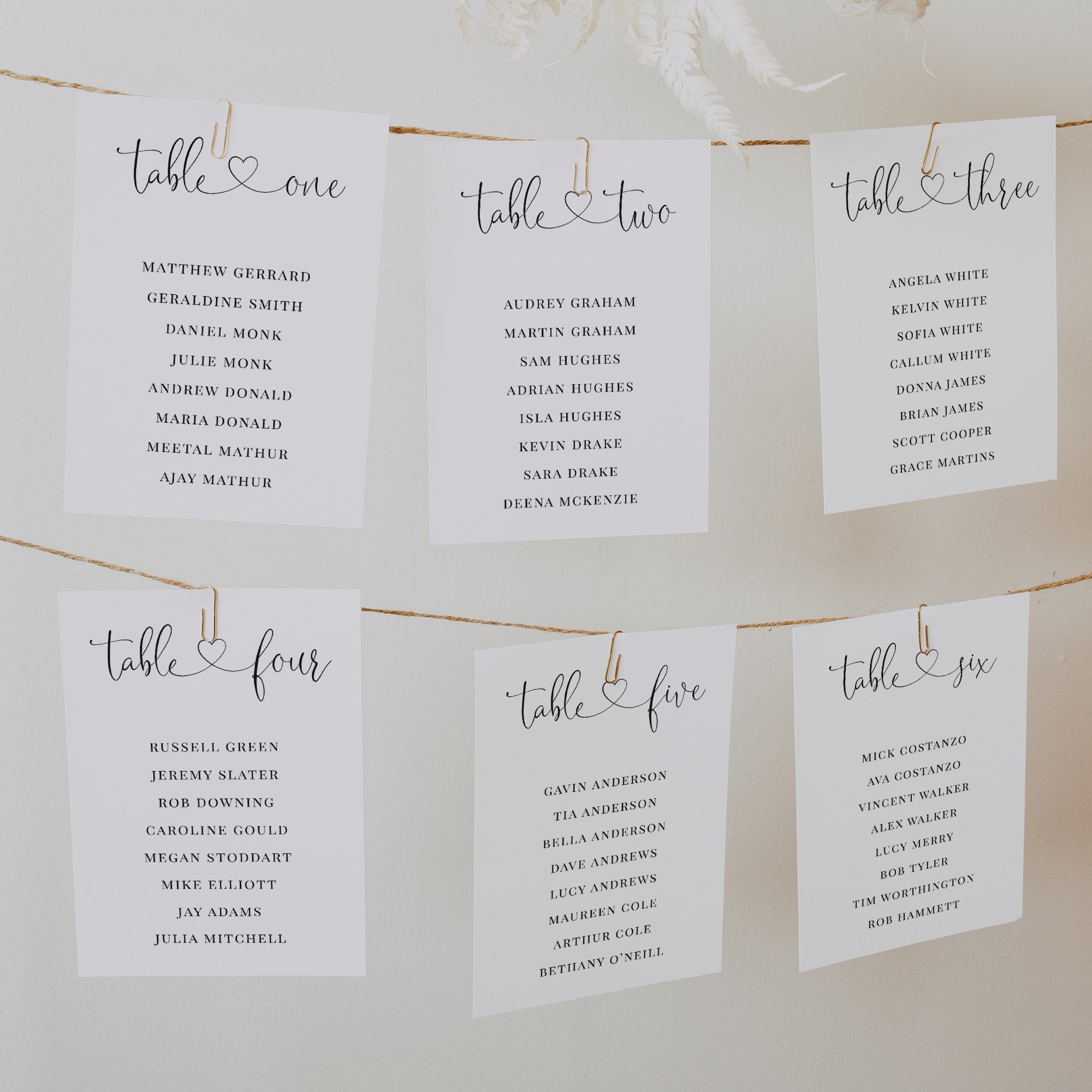 Table plan cards are offered in A6 (105mm x 145mm), 5" x 7" (127mm x 177mm) or A5 (148mm x 210mm).