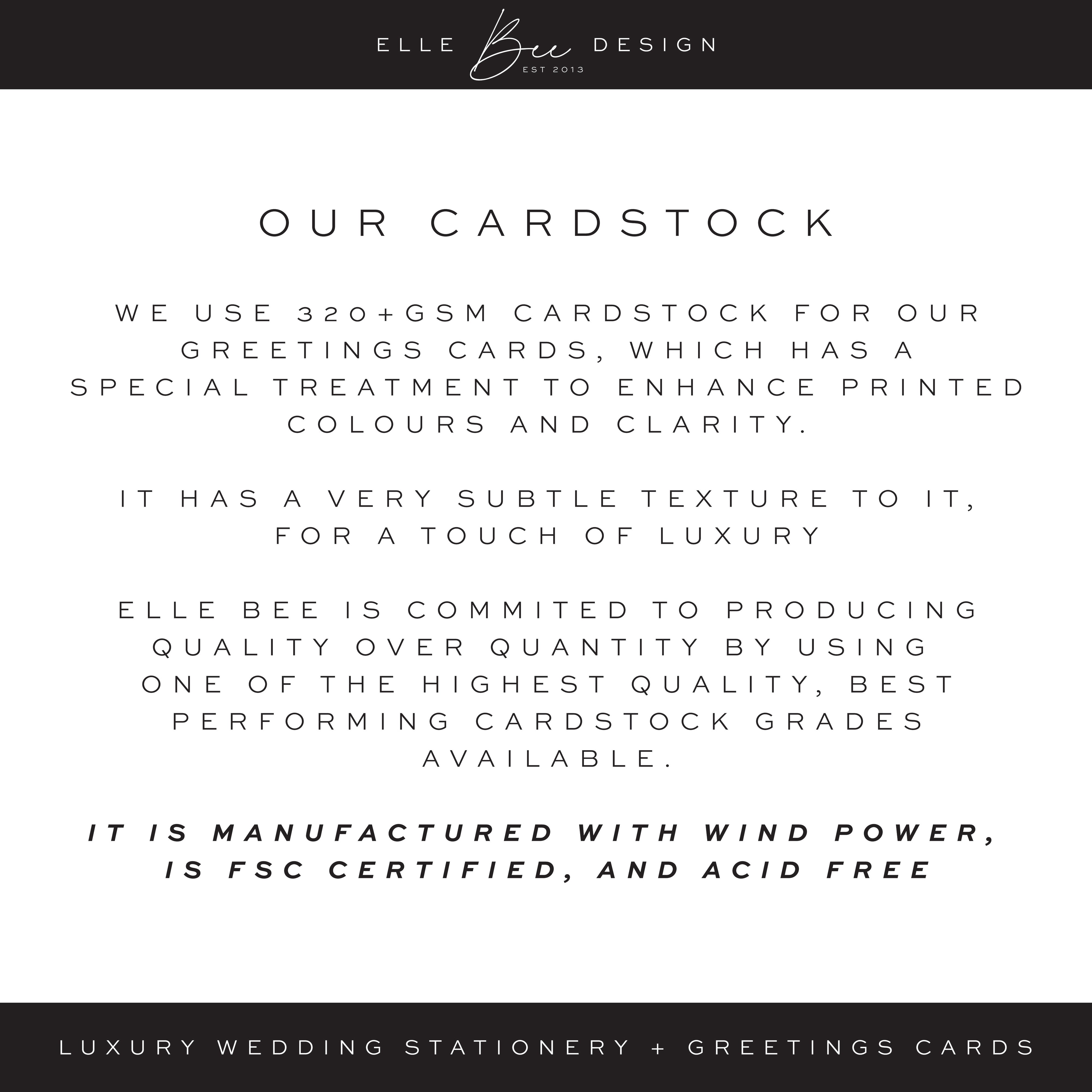 So that we can keep Elle Bee Design wedding-focused and to give our greeting cards a proper home of their own, we have set up a new company for our greeting card designs with an expanded inventory.