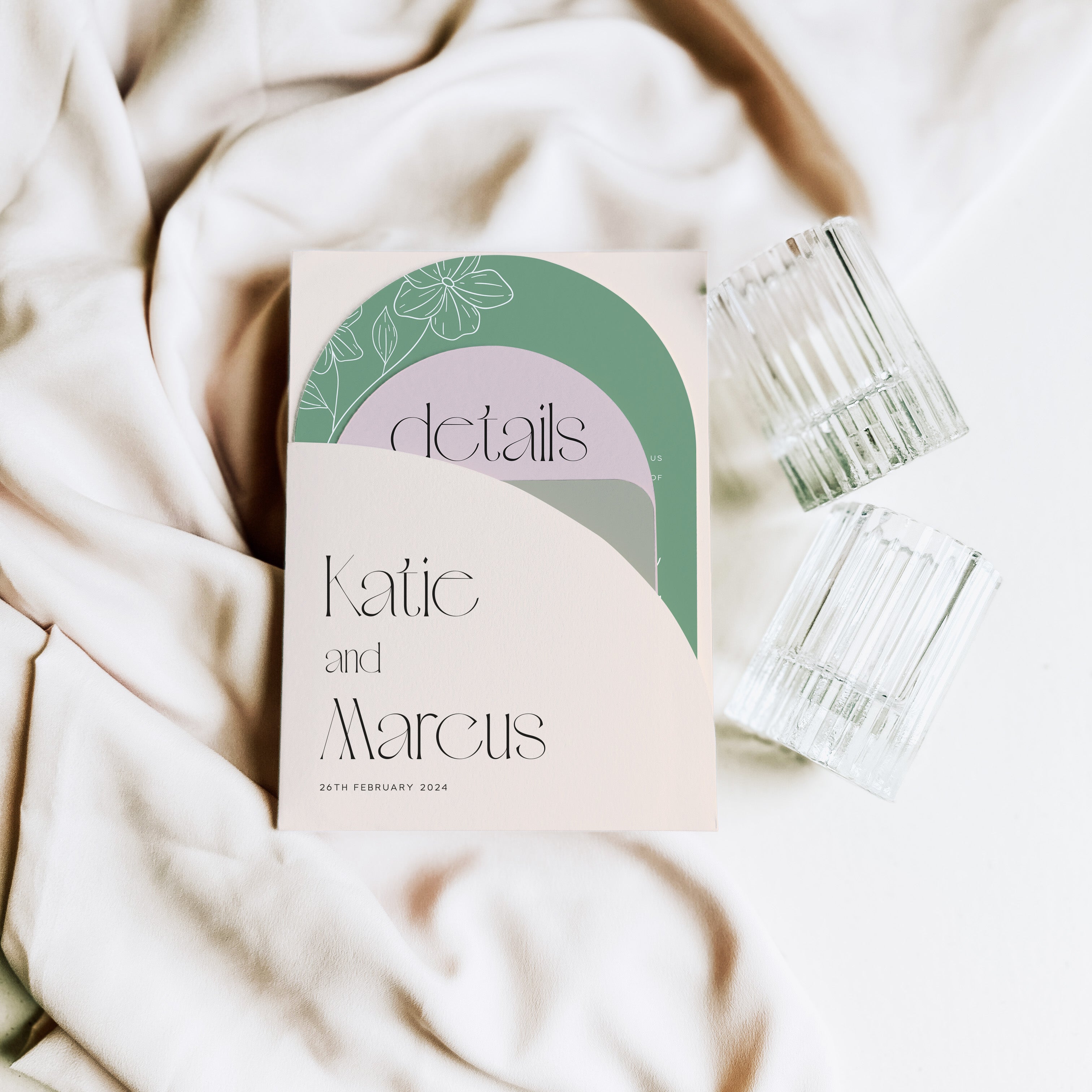 Beautifully suited to unique shapes and colours, this stunning shaped invitation suite is from our Clapham collection. Choose your shapes, colours and accessories to build a suite that matches your style.