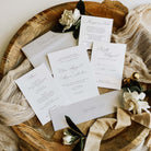 How much information you include with your invitations will depend on your event, as this differs from couple to couple. It’s for this reason that our invitations are versatile, enabling you only to order the pieces that you need. But we do recommend that less is more in most cases.