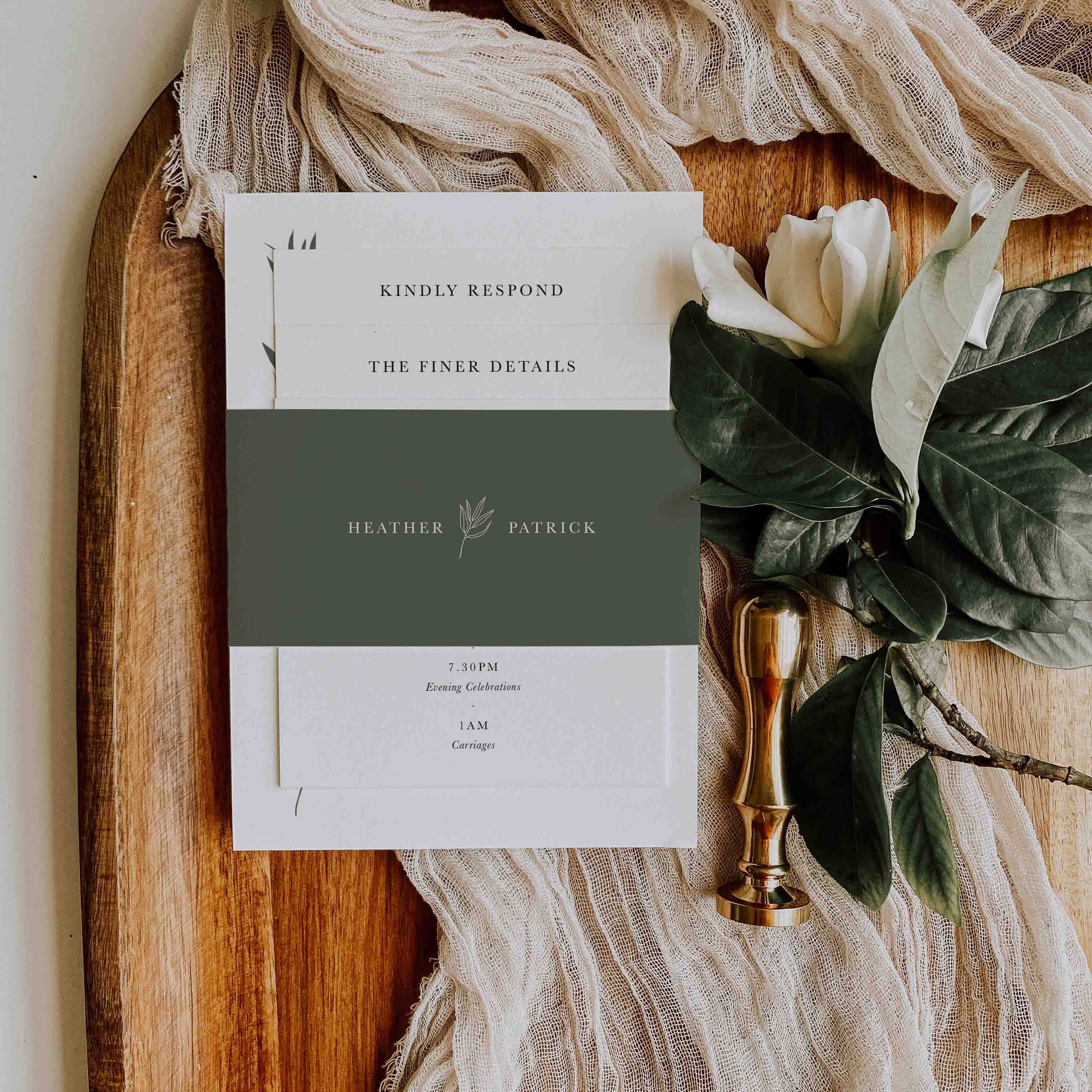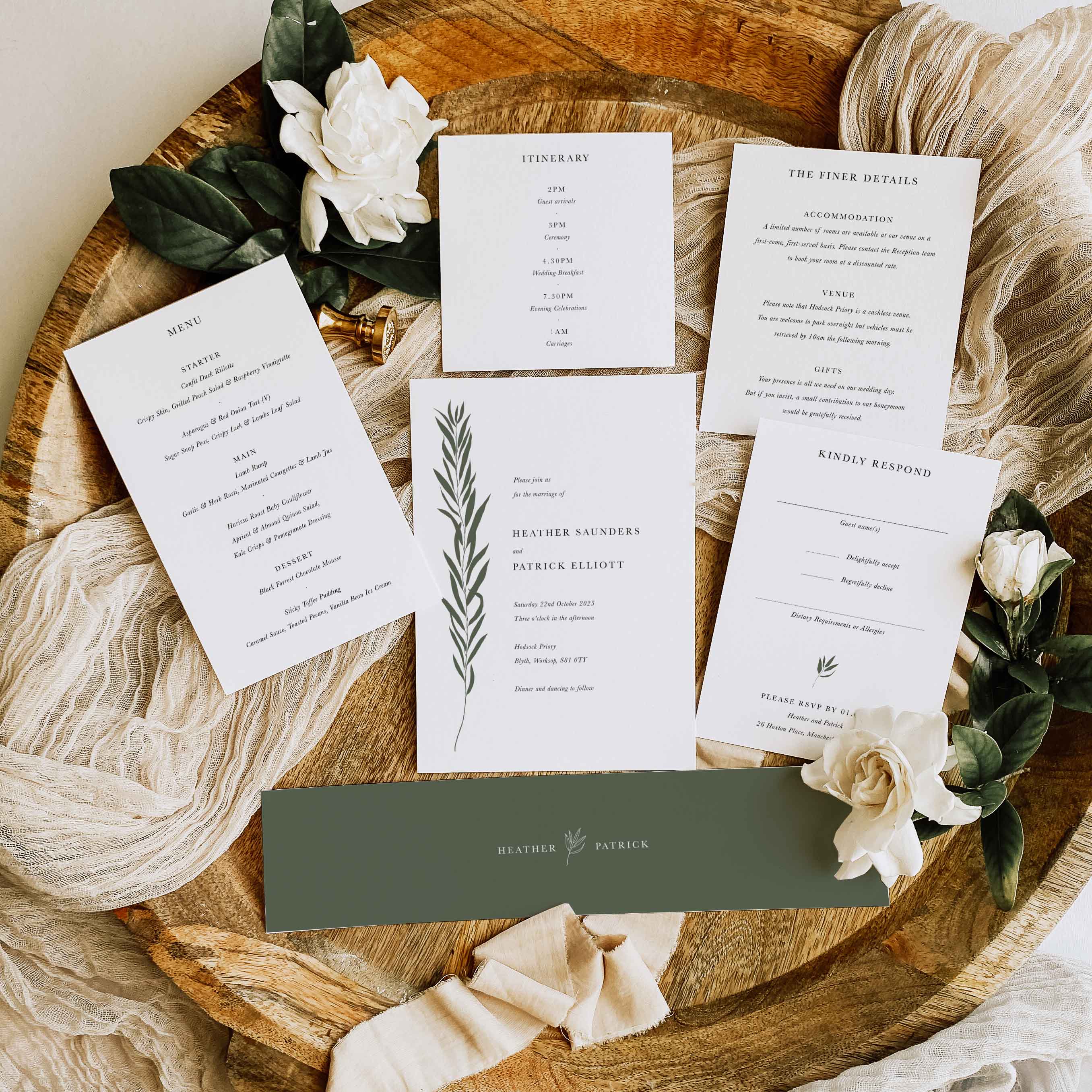 With a simple and elegant design, this botanical and classical wedding invitation suite is from our traditional Heather collection.