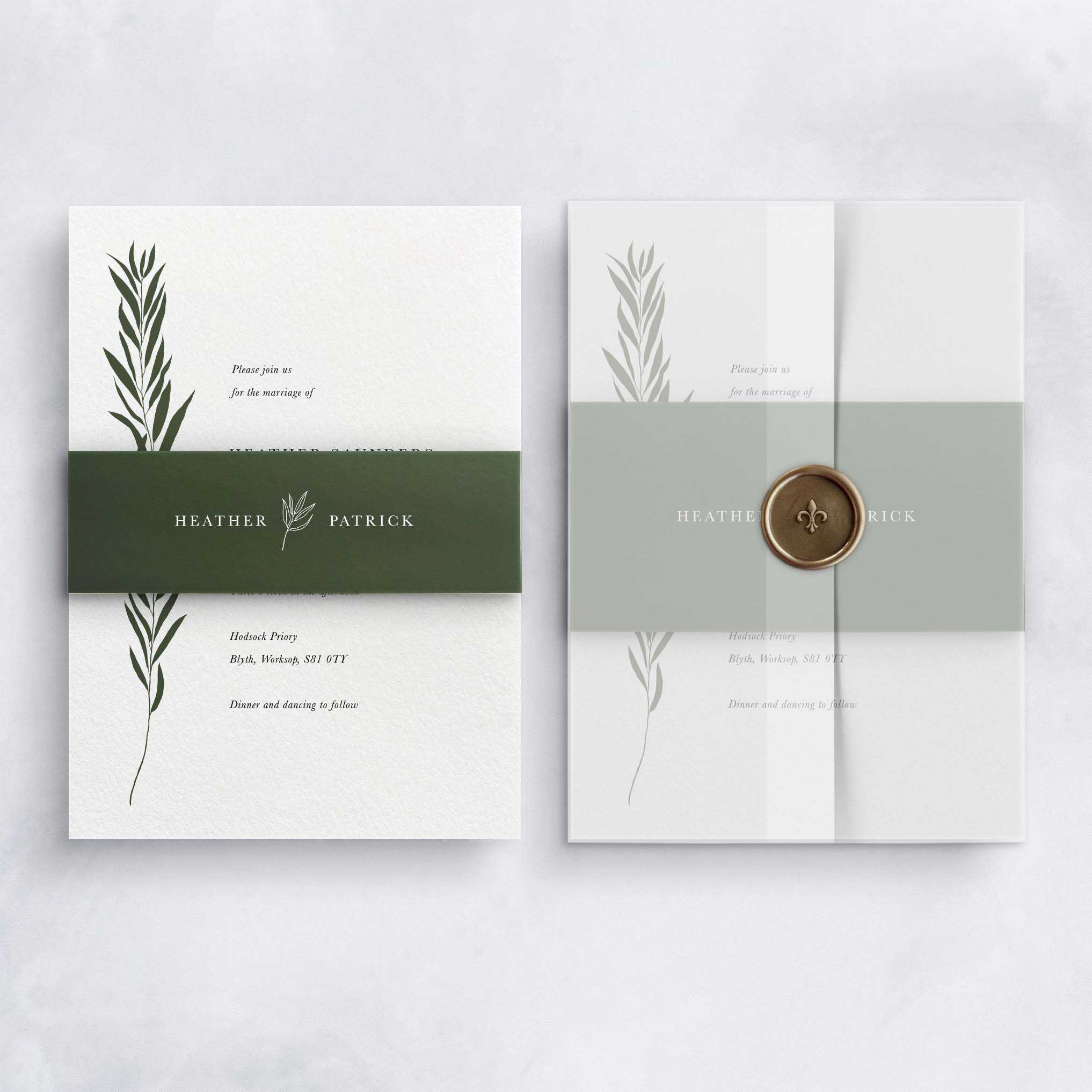 - Additional styling options available, such as belly bands, vellum jackets, wax seals, coloured envelopes and liners, plus envelope addressing and guest name printing.