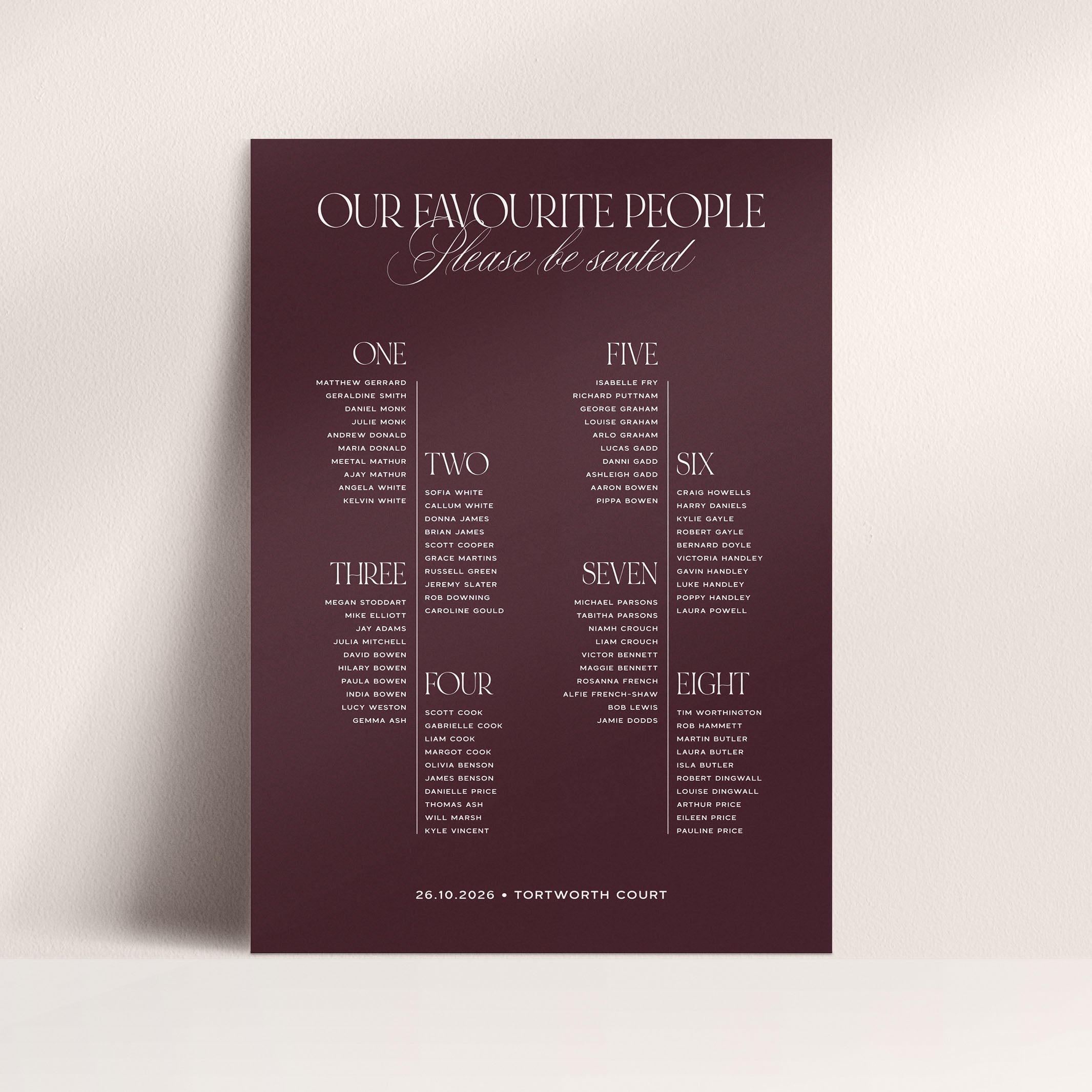 It’s likely that your signage will be part of a larger order for multiple stationery and signage items; in which case we’d suggest placing your order 6-8 weeks before your wedding date so we can proof all items before approval.