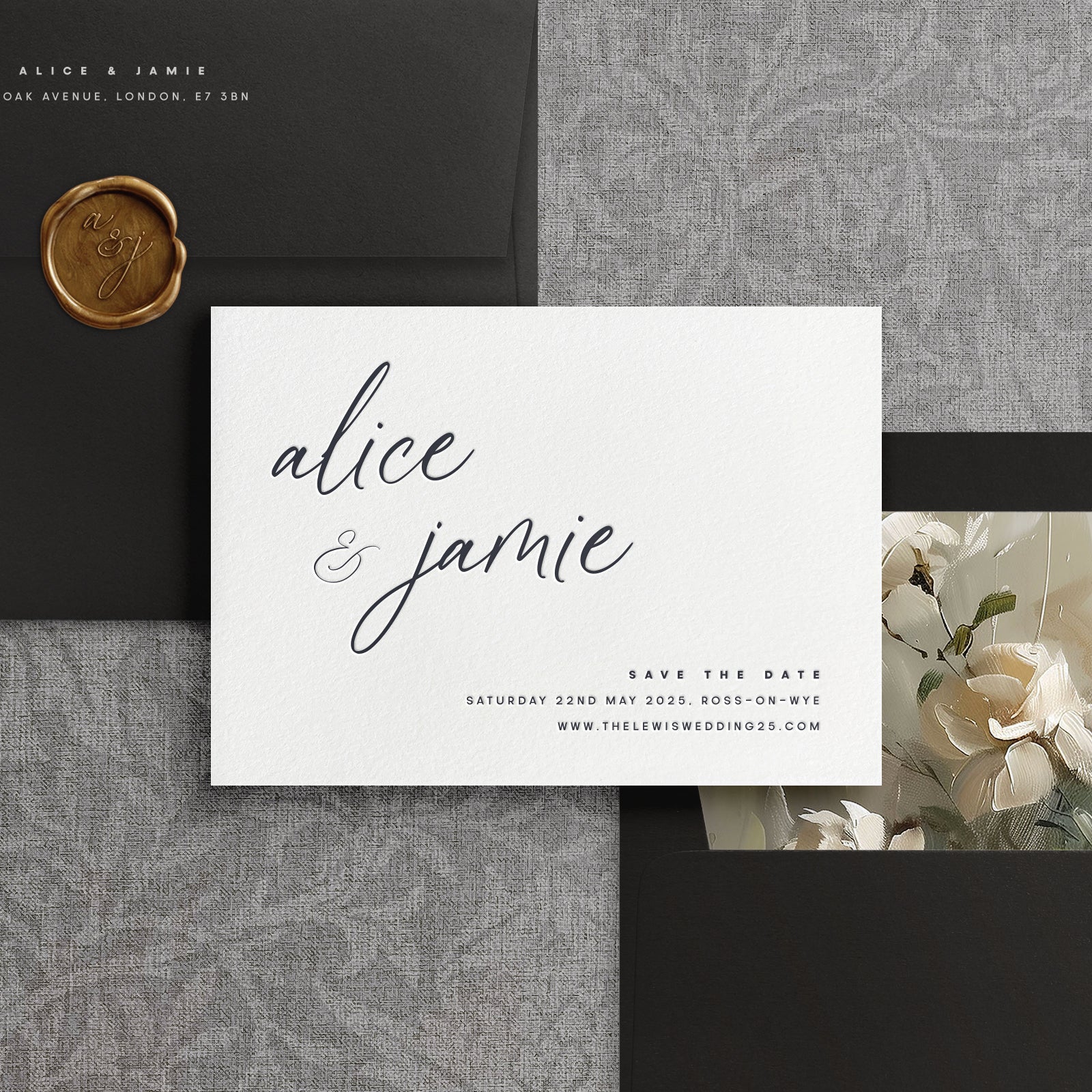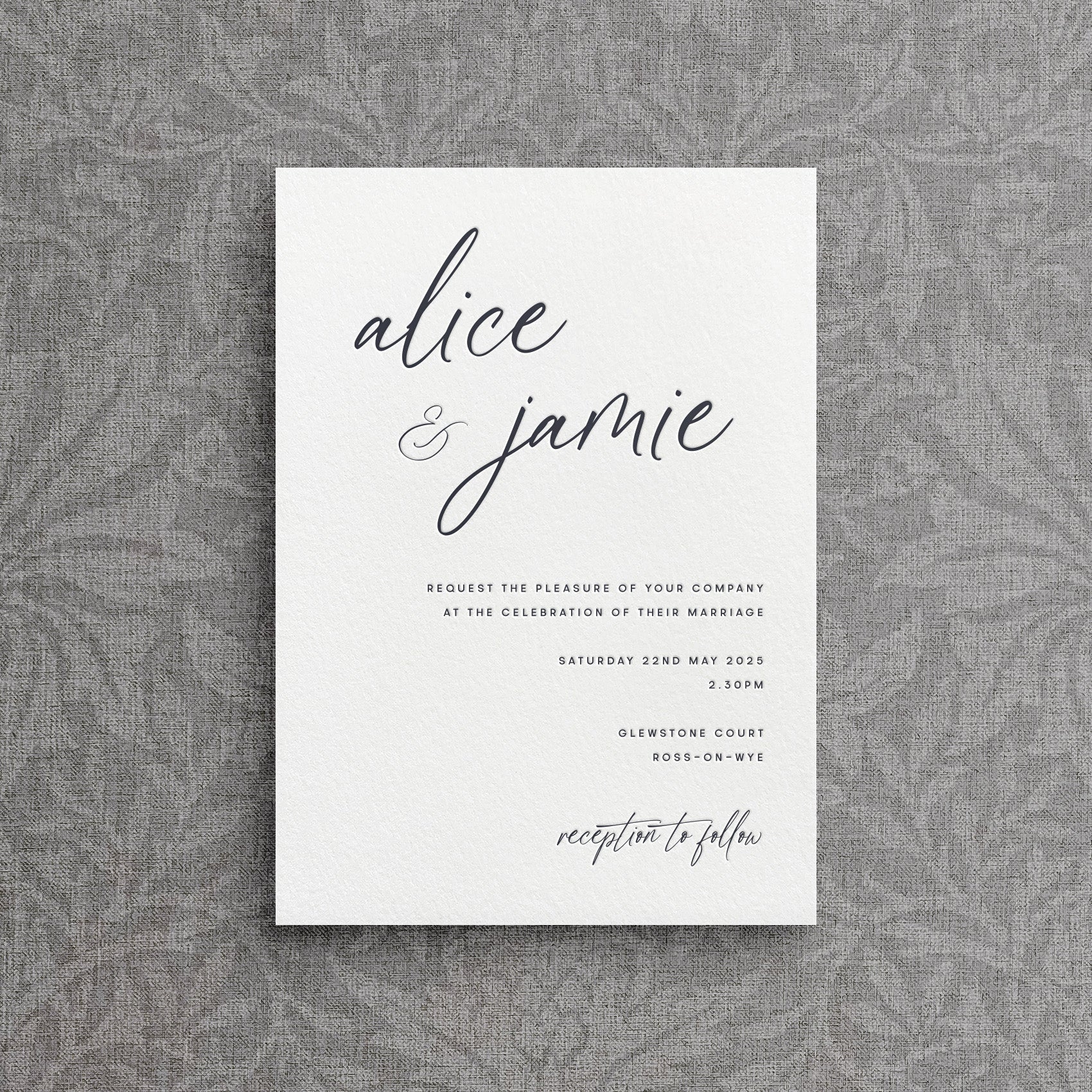 Our Alice collection features a modern and elegant design, combining a flowing script and simple, contemporary typography to create a versatile design.