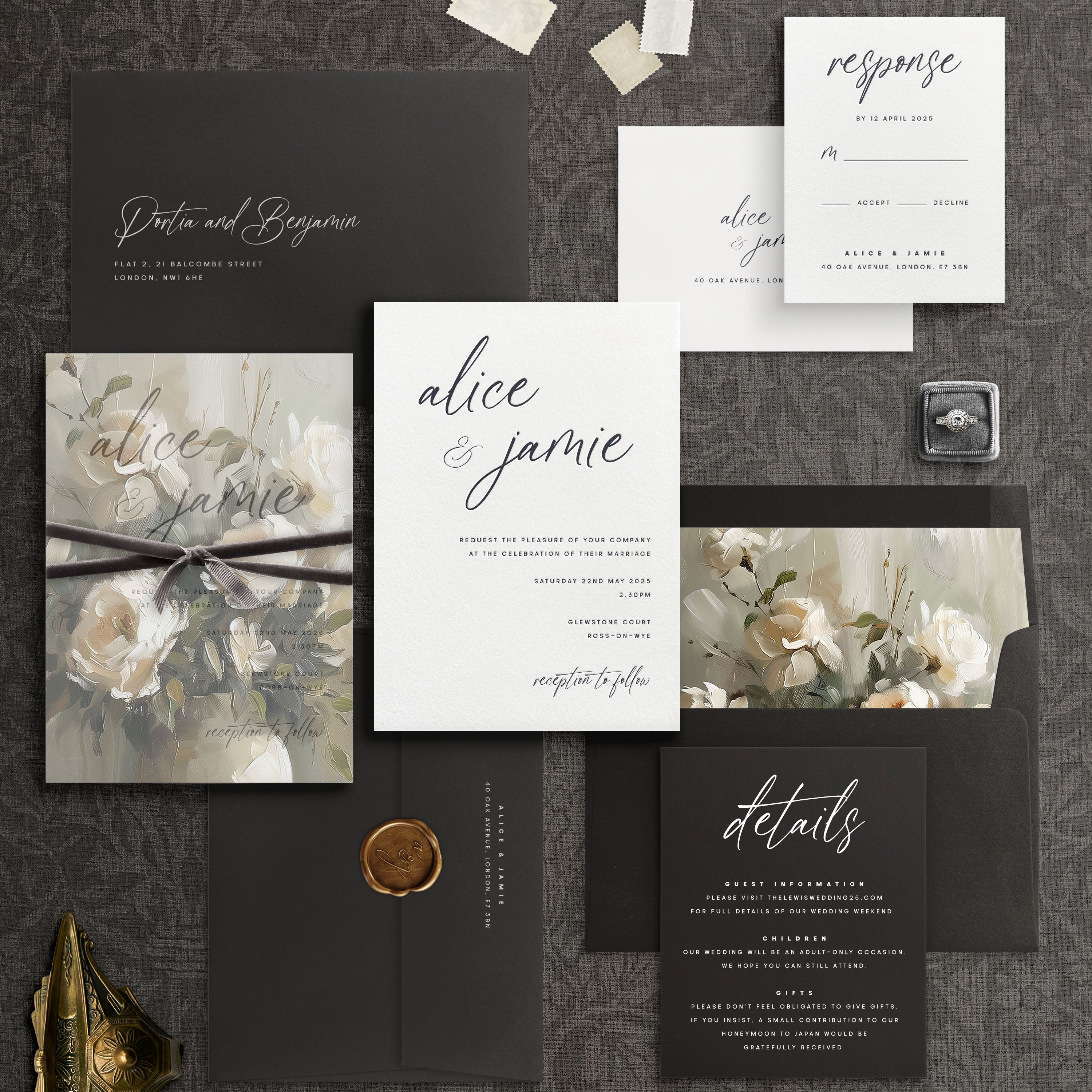 Additional advice would be to keep information concise where you can and, if possible, use a wedding website for a lot of your long-form, conversational wording. This can ensure you can put more of your budget into the styling of your invitations.