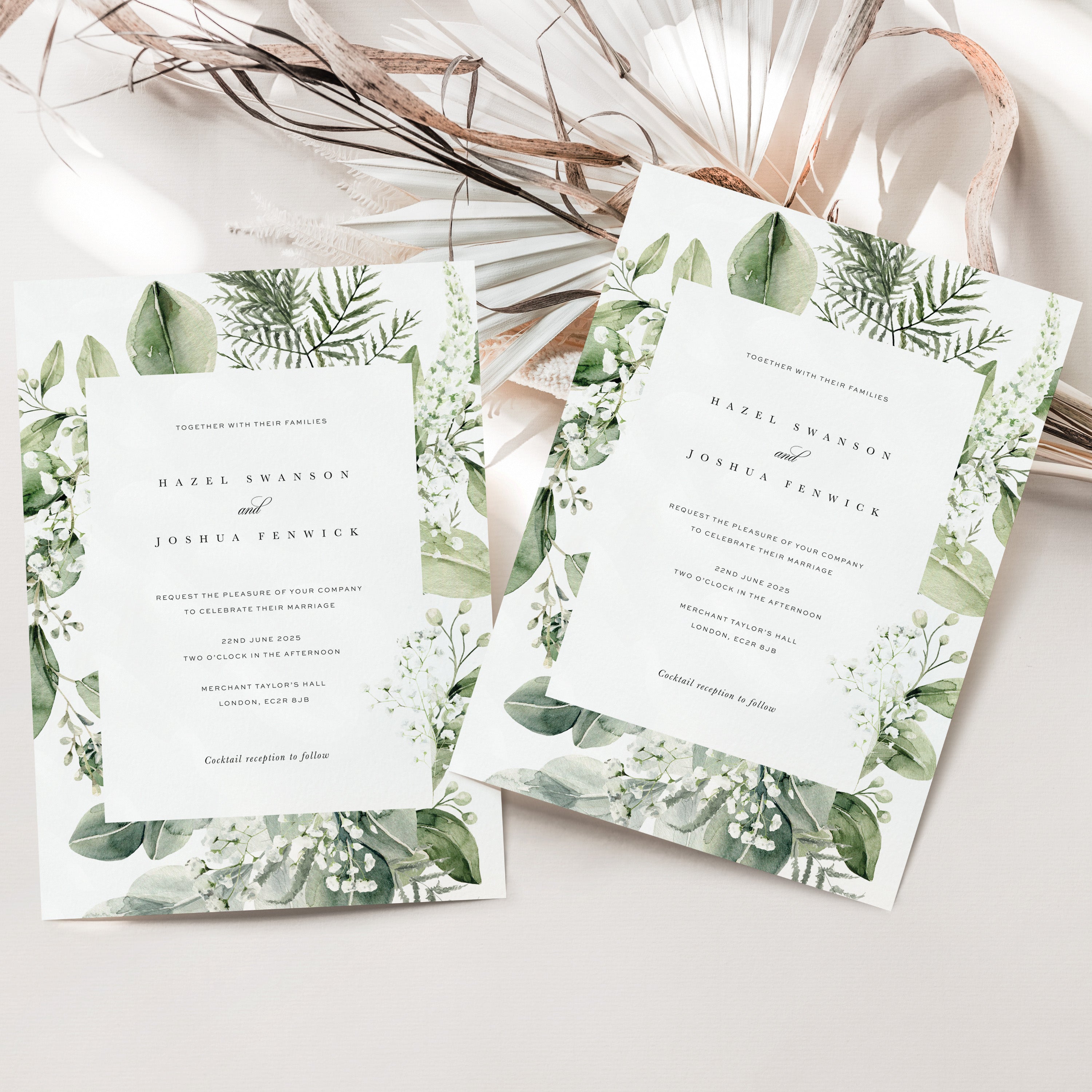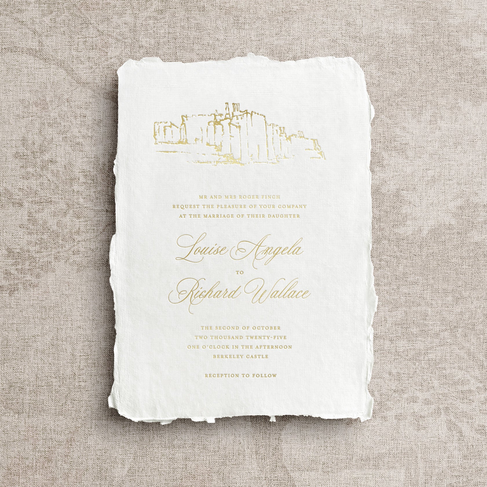 This pictured example is our Warwick invitation with typography from our Willesden collection.