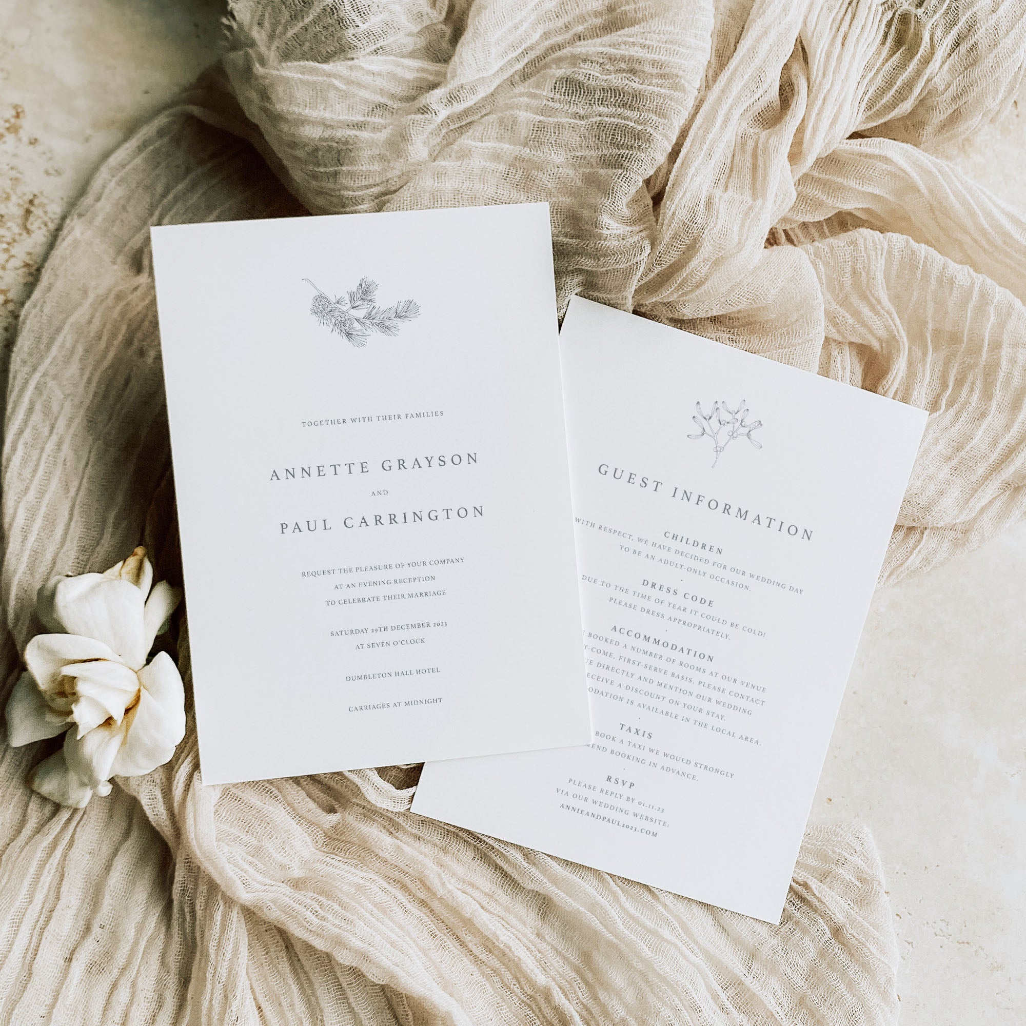 This evening invitation comes from our Angel collection, perfect for a winter wedding.