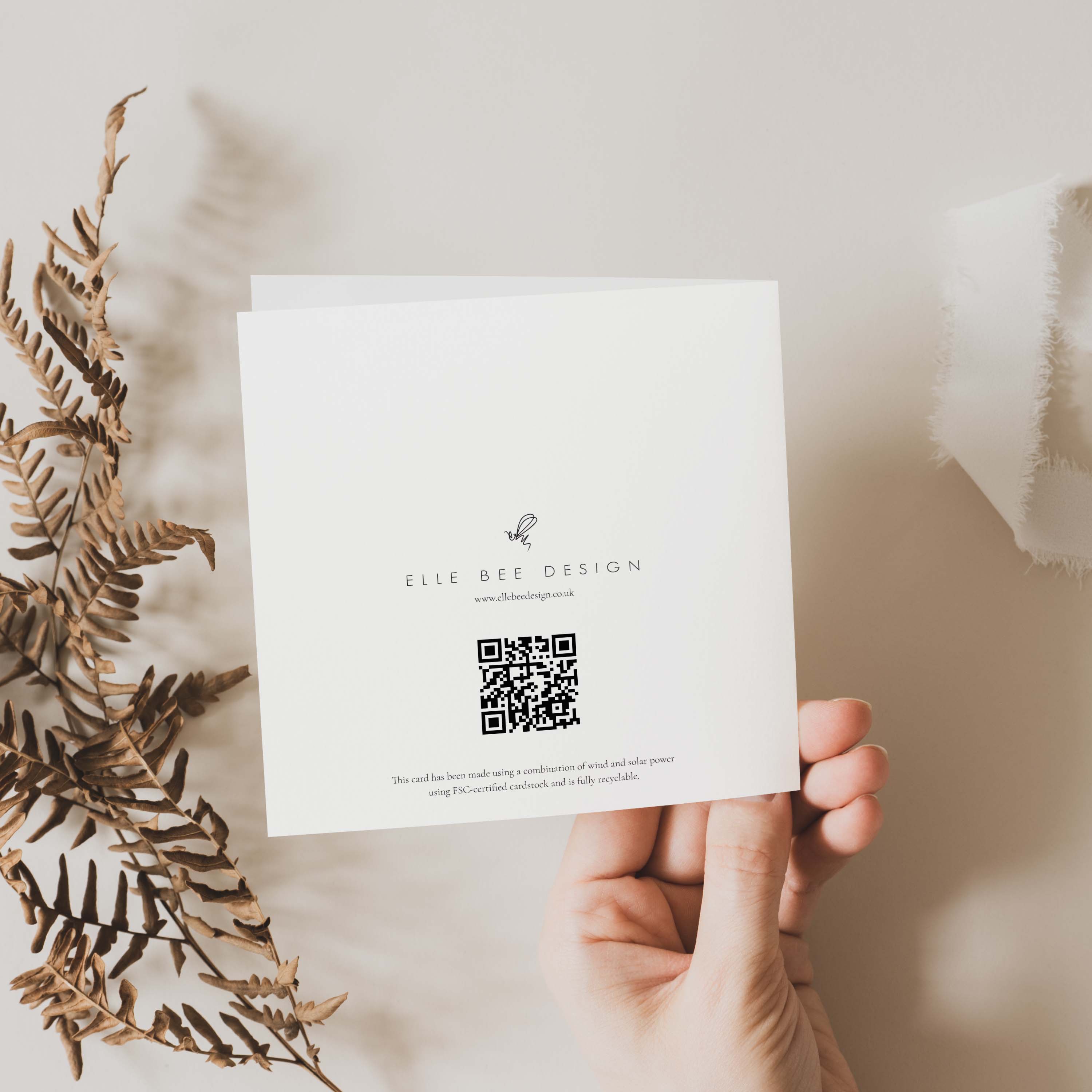 Our goal was to find the most sustainable cardstock for printing our cards and we stumbled upon a lovely stock that's manufactured using a mix of solar and wind power which is truly unique, alongside being FSC-certified for responsible forest management.