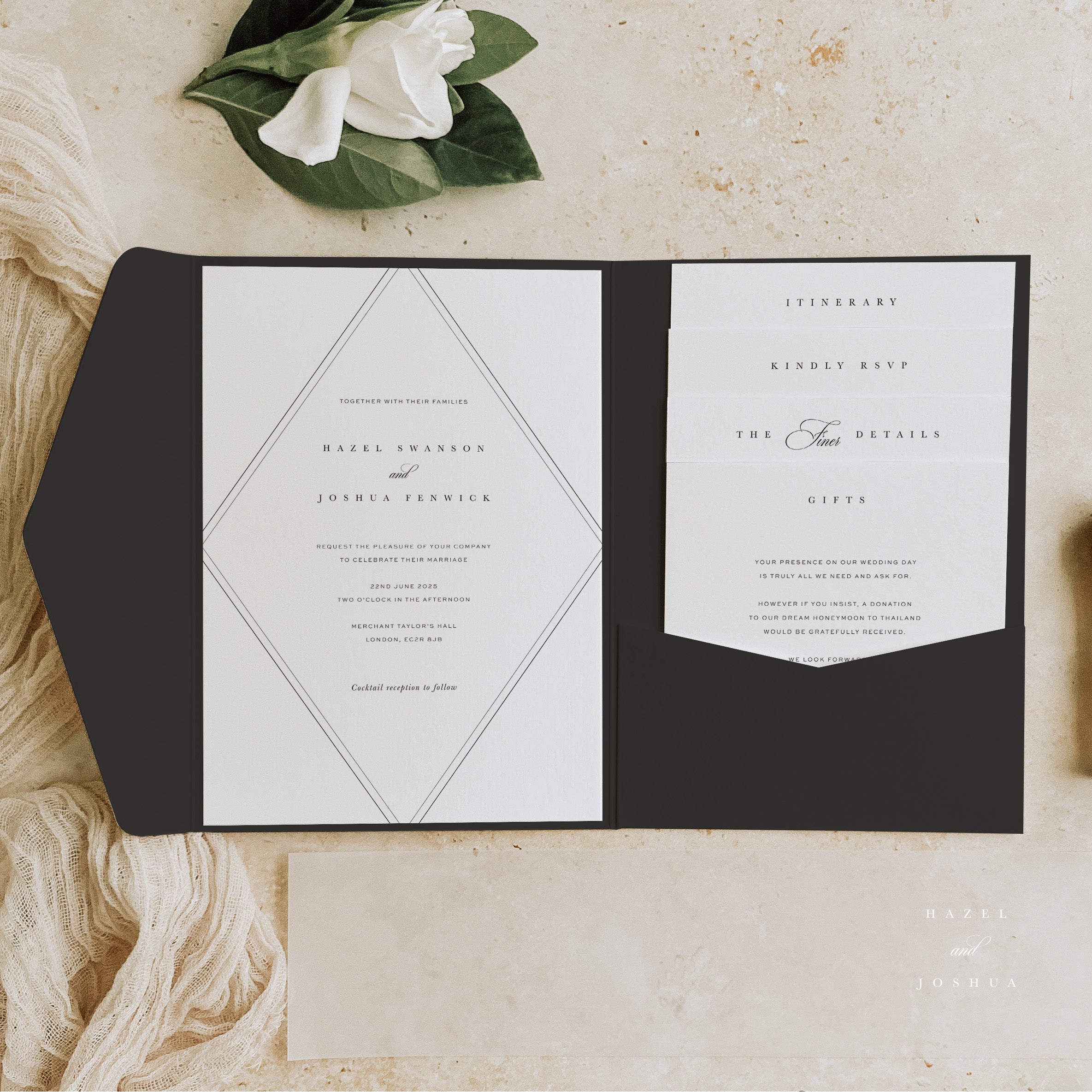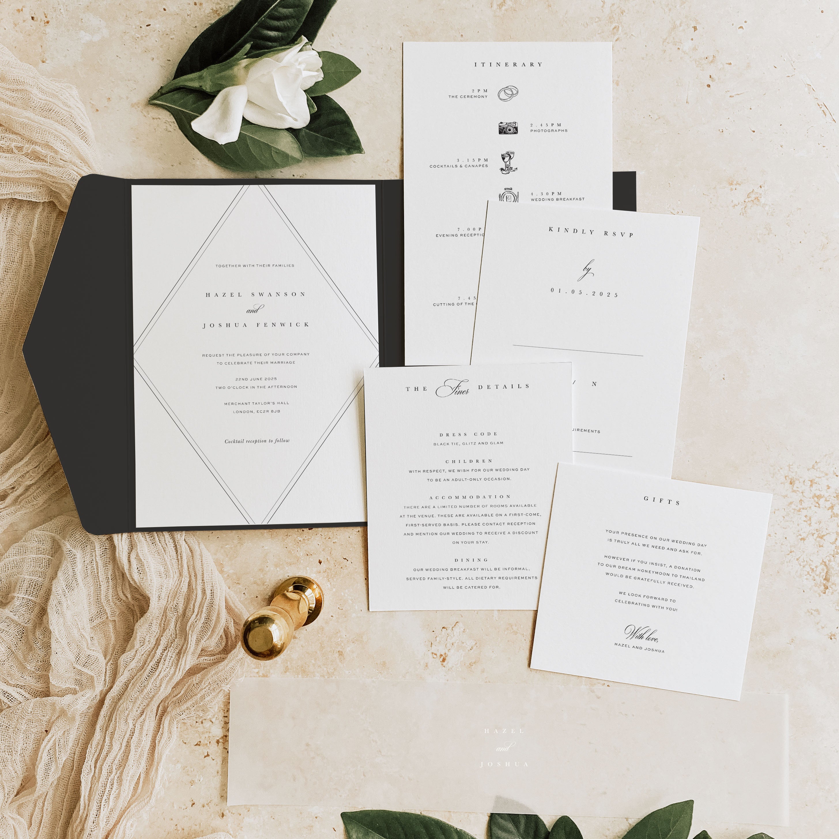 - White matt diamond-flap envelope included as standard. RSVP card can be provided either with a digital or physical response.